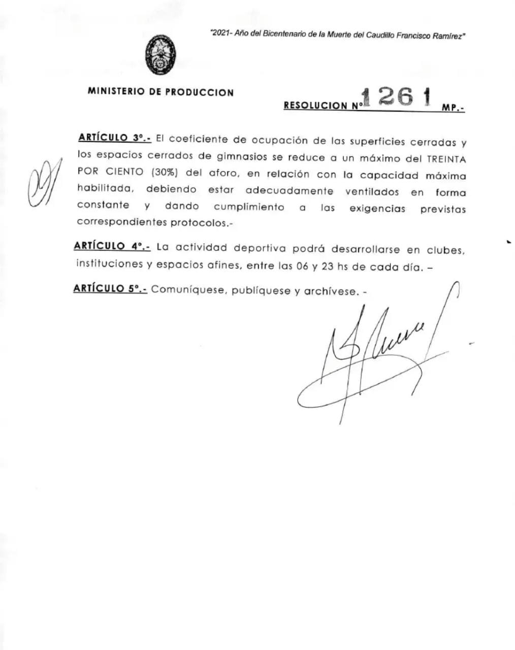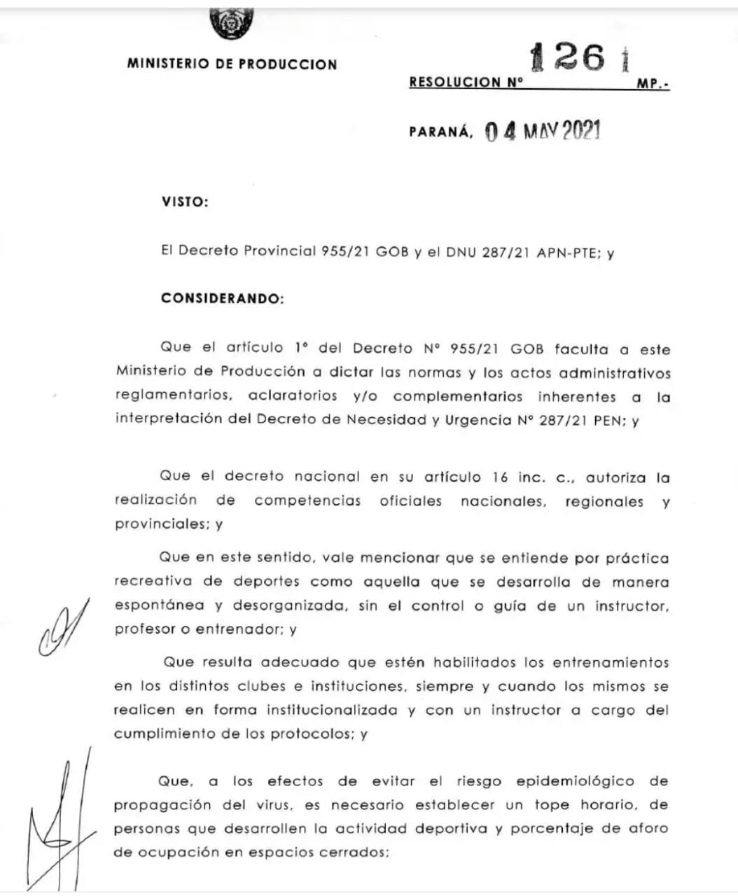 Ambas resoluciones, fechadas el martes 4 de mayo, llevan la firma del Ministro de Producción Juan José Bahillo, pese a que la secretaría de Deportes depende de la cartera de Desarrollo Social y que Cultura es un área con dependencia directa de la Gobernación. Se debe a la autorización que a tal fin otorgara el gobernador Gustavo Bordet a Bahillo a través del decreto provincial 955/21.