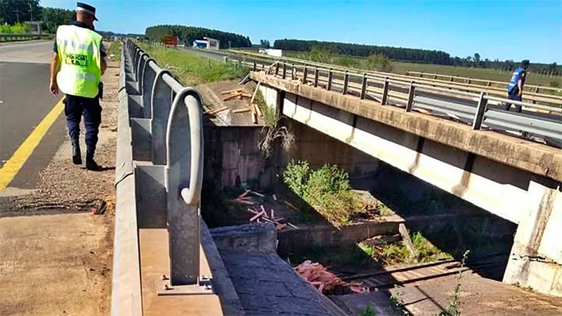 El siniestro vial ocurrió sobre la Ruta 14 luego de que el camión despistara, chocara el guardarrail y cayera del puente.
