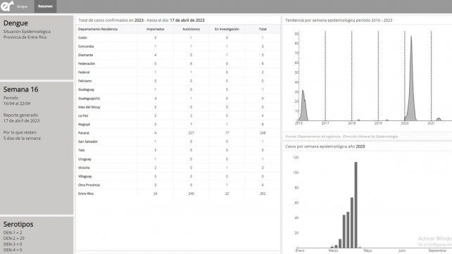 El Ministerio de Salud de Entre Ríos confirmó que volvió a elevarse la cifra de casos de dengue en el territorio provincial: de los 259 que reportó el 14 de abril ahora se registran 292. Es decir, 33 nuevos infectados. En su último reporte sobre la situación epidemiológica, la cartera sanitaria dio cuenta que se estudian 24 casos importados, 246 autóctonos y que 22 aún se encuentran en investigación para conocer su procedencia.