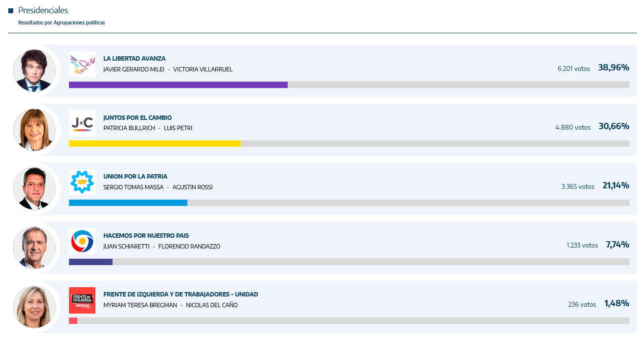 Sergio Massa obtuvo 3365 votos, mientras que Juan Schiaretti cosechó 1233 votos y Bregman 236.