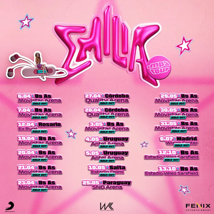 Con producción de Fenix Entertainment, la presentación en el Estadio Velez será sin precedentes, como Emilia nos tiene acostumbrados, siempre renovándose y yendo por más.  El show contará con un gran despliegue de escenografía, vestuario, coreografías, un viaje musical de regreso a los inolvidables sonidos de los años 2000, reimaginados por Emilia. Por supuesto no faltarán las canciones icónicas que ya son himnos como “420”, “La Chain”, “Como si no importara” y más, pero esta vez estarán intercaladas con los nuevos temas de su álbum “.mp3” que perfilan romper toda la pista.