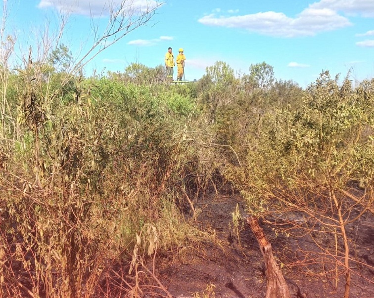 Rastrojo de trigo y un monte con chilcas, dificultaron aún más la sofocación practicada por bomberos voluntarios de Ramírez y Crespo.