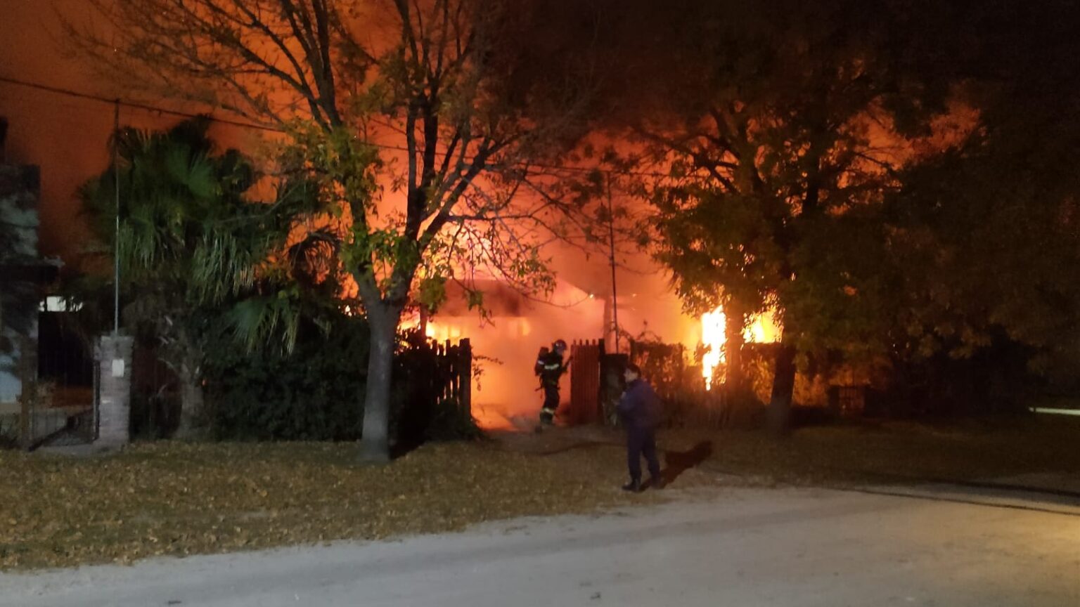 En cuestión de minutos, las llamas se apoderaron de la vivienda. Cinco móviles de bomberos voluntarios abastecen de agua en el lugar, para lograr controlar el fuego.