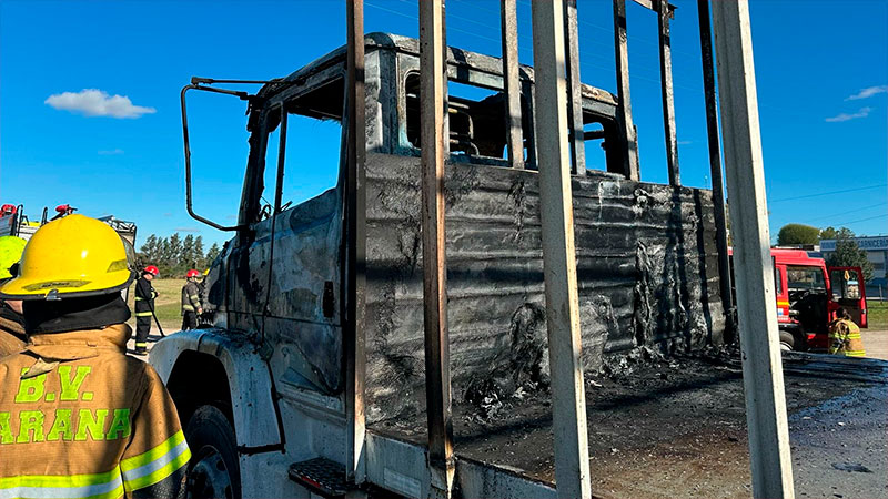 Sin embargo, el conductor alcanzó a desenganchar el acoplado y retirar las jaulas para pollos que trasladaba. Al lugar del incendio, llegaron los Bomberos Voluntarios de Paraná, para sofocar el fuego y limpiar parte de la cinta asfáltica que había sido afectada por el siniestro.