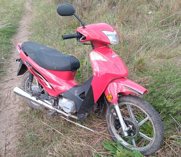 El Jefe Departamental Uruguay, Esteban Allegrini, informó a FM Estación Plus Crespo: "Un joven de 20 años, se hizo presente en Comisaría Tercera, en la mañana del martes, denunciando la sustracción de su motovehículo. Había dejado la unidad en el garaje de su vivienda, siendo una Mondial 110 Max. Se realizaron prontamente las tareas investigativas, pudiendo en horas de la tarde de la misma jornada, localizar el bien en inmediaciones a la intersección de Ana U. de Victorica y 10 del Norte, hallándose oculto entre la maleza".