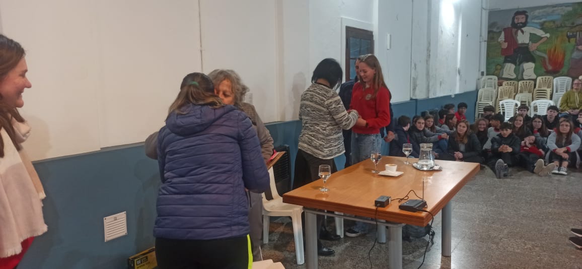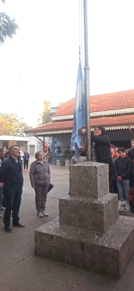 Al finalizar la charla, Carmen Mabel Arrúa, Aníbal Lanz y Nora Chiappesoni procedieron a arriar el pabellón nacional, en un acto solemne que contó con la participación de todo el alumnado del Instituto Comercial Crespo. También se le entregó un presente a cada uno por parte de profesores y alumnos de la institución