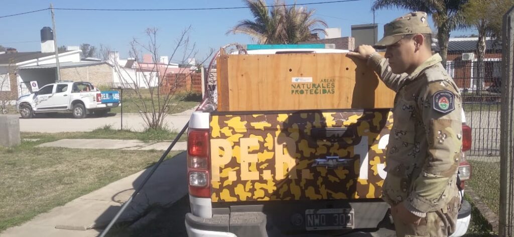 La propietaria convocó a la Brigada Paraná de Delitos Rurales, quienes viajaron hasta el interior del departamento, para resguardar el ejemplar, hasta su liberación en un ambiente natural.
