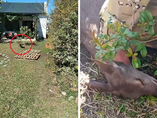 Asustado, un Guazuncho buscaba poder salir del patio de una casa: fue rescatado. VIDEO