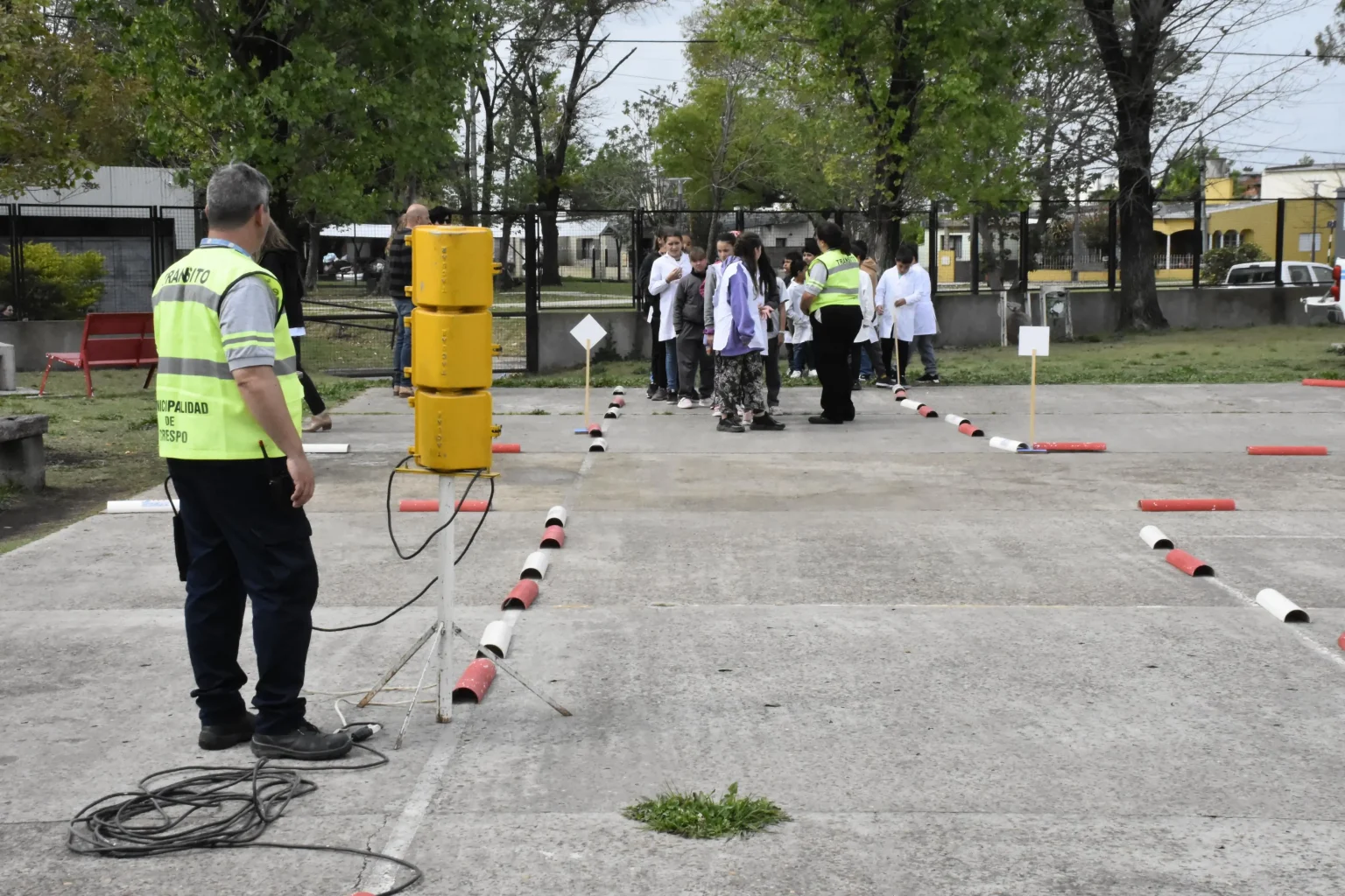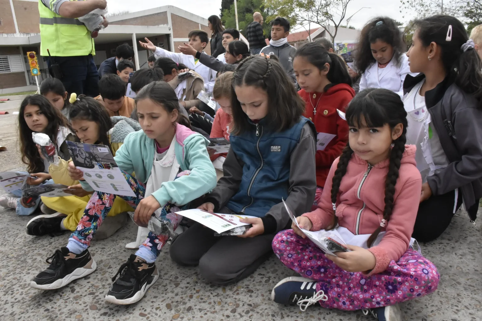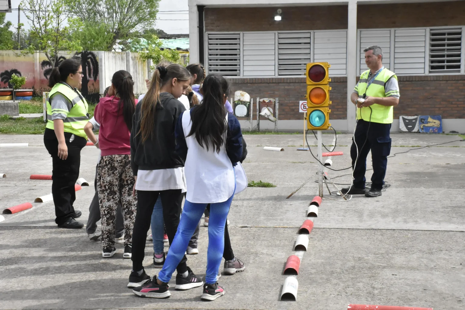 En el marco de esta campaña de educación vial, estudiantes de 4º grado guiados por agentes de tránsito llevaron a la práctica lo aprendido en estas jornadas donde como ciclistas o peatones recorren un circuito -que simula la vía pública- e identifican qué hacer frente a cada señalización.