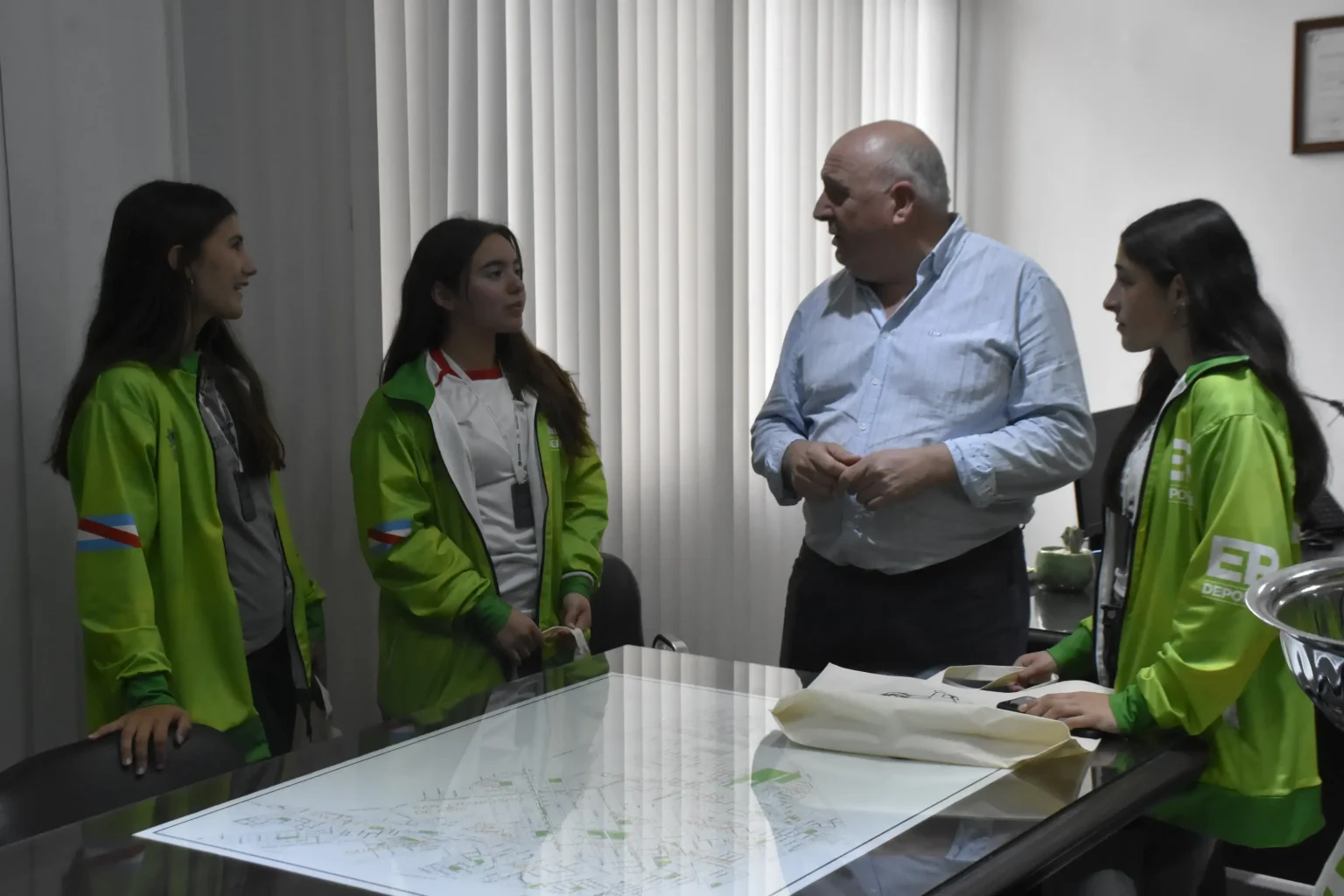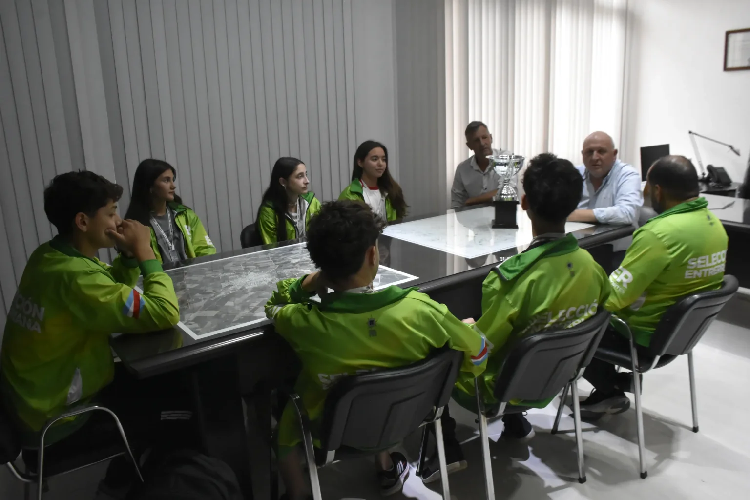 Los jóvenes estuvieron acompañados por el entrenador Iván Alanis, quien también formó parte de la delegación de Entre Ríos que tuvo un gran desempeño en Mar del Plata. Durante la reunión en intendencia, también participó Miguel Berns (de la subdirección de Deportes).