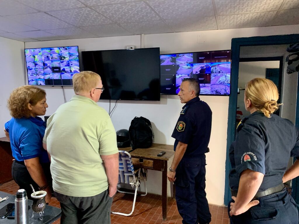 El presidente municipal de Aldea María Luisa, Luis Pablo Schonfeld, junto con la secretaria de Gobierno, Gladis Salomón, visitaron la Comisaría local para conocer de cerca el funcionamiento del sistema de monitoreo implementado en la jurisdicción con apoyo del municipio.