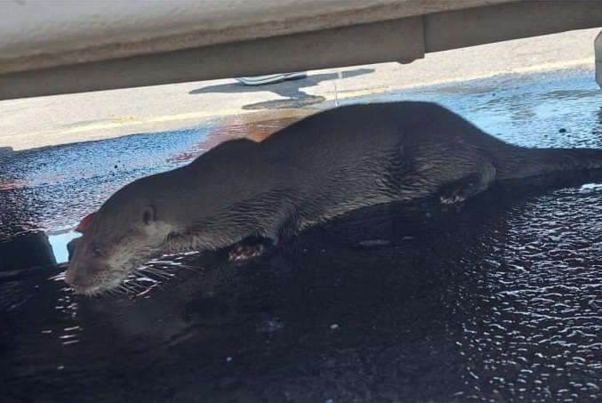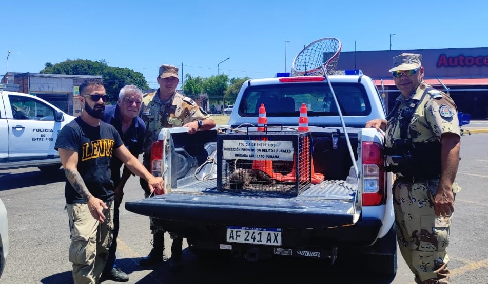 Alrededor de las 13:20, un hombre se dispuso a retirarse con sus compras, cuando visualizó que bajo la camioneta estacionada en el playón del Hipermercado Chango Más de Avda. Larramendi, había un animalito que no llegaba a distinguir si se trataba de una nutria joven o un lobito de río. Presente la policía de esa jurisdicción, advirtió que la situación ameritaba la presencia de la Brigada Abigeato Paraná, a cargo del Crio. Ppal. Leandro Peralta.