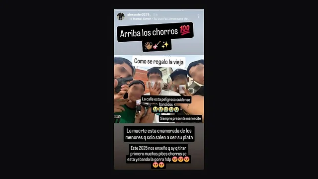Luego, al final de la fotografía, escribieron una oración hacia la policía, indicando que hay que accionar antes que ellos: “Este 2025 nos enseñó que hay que tirar primero, se están llevando a muchos pibes chorros, la gorra, hija de puta”.