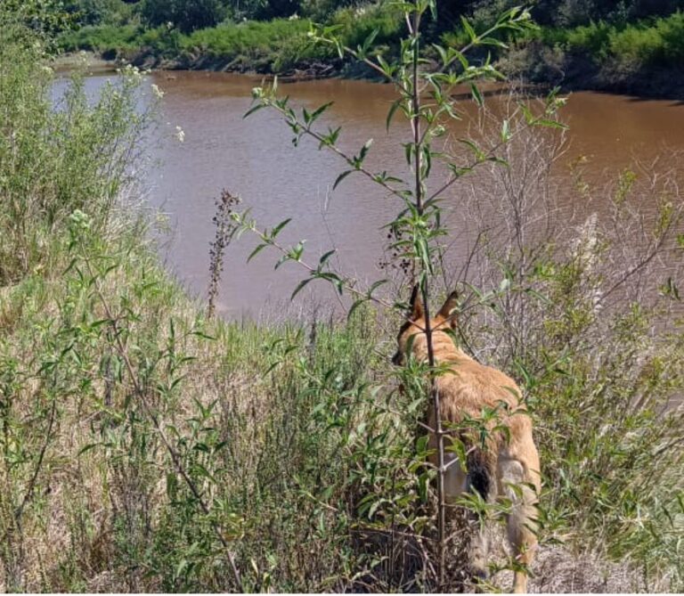 La can adiestrada para localizar restos humanos participó del operativo de búsqueda del hombre desaparecido. Pablo Giménez detalló el escenario y la modalidad de la labor bomberil.