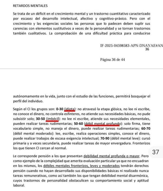 El Gobierno de Javier Milei enfrenta una nueva controversia tras la publicación de un documento oficial de la Agencia Nacional de Discapacidad (ANDIS) que utiliza términos como “idiota”, “imbécil” y “débil mental” para categorizar a personas con discapacidad intelectual en función de su coeficiente intelectual (CI).