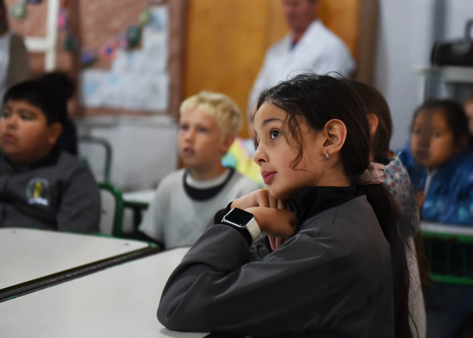 “Los chicos son grandes comunicadores para llevar la información a sus familias”, dijo Andrea Colombara (del Área de Salud y Zoonosis), antes de iniciar el Taller sobre Cuidado responsable de animales para los alumnos de la Escuela Primaria Nº 187 ‘Argentina Soberana’.