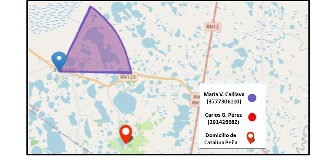 En ese lapso se registraron dos llamadas que los fiscales catalogan como “sumamente sospechosas”: a las 14:09 hs. Ramírez, encontrándose en el naranjal, llama al teléfono de su hermana Mabel Ramírez, y conversa durante más de ocho minutos. Después de las 14:25 hs. Antonio Benítez llama a Laudelina Peña y hablan por más de nueve minutos”.