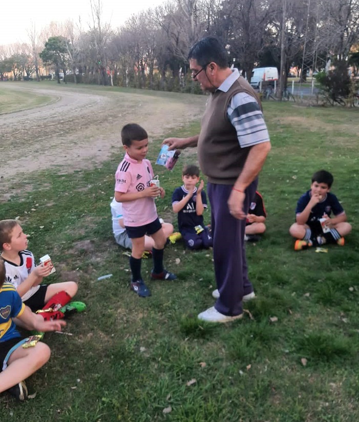 El compromiso de Darío y su familia es permanente. “Mi señora me hizo bizcochuelos para mi cumpleaños, hace pocos días, y poder compartirlos con los chicos en el campito, con una rica chocolatada. Mi hija y mi hijo me ayudan siempre que pueden. Lo hicimos en Las Cuevas, lo hacemos en Crespo. No hay distinción de clases sociales. Todos son bienvenidos”.