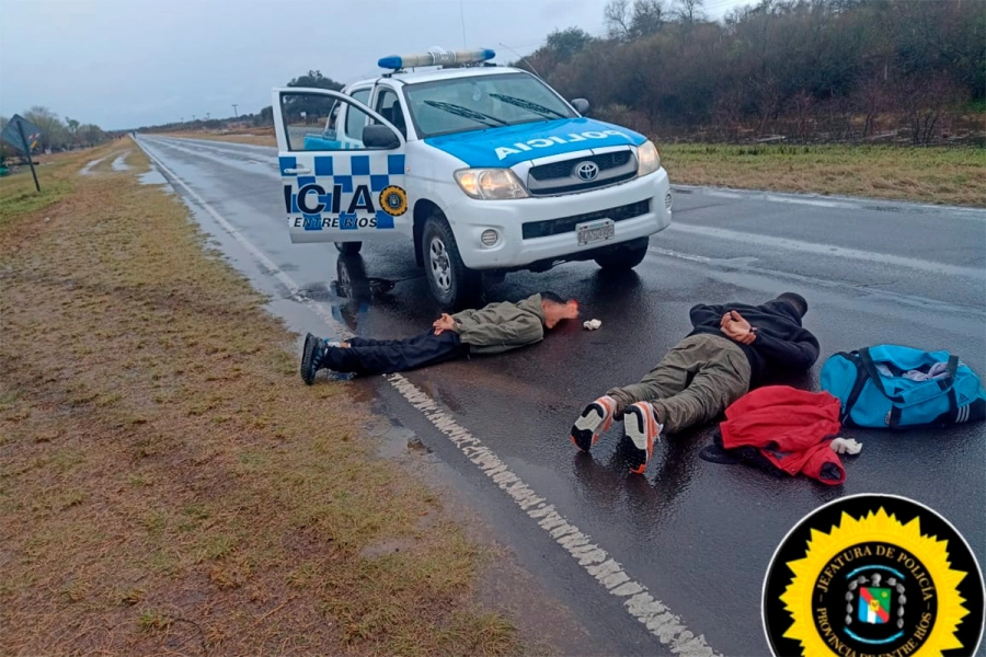 Personal policial del Puesto de Control Vial Paso Telégrafo intervino este martes en horas de la mañana en un hecho registrado sobre el kilómetro 630 de la Ruta Nacional 12, en el departamento La Paz, donde encontraron un vehículo volcado. En el lugar observaron a dos hombres que intentaban darse a la fuga, pero fueron interceptados.