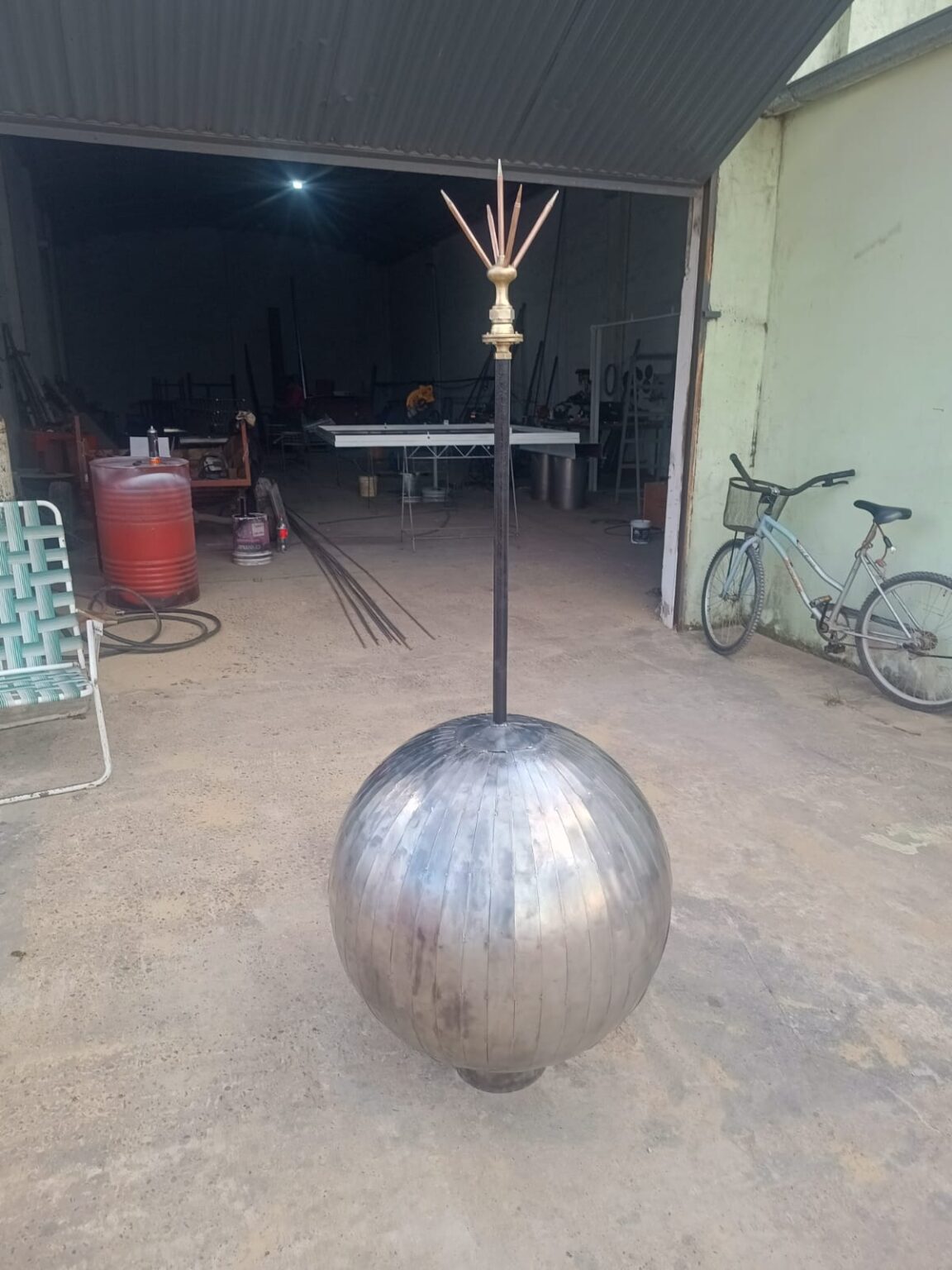 Por su parte, Emanuel Ramírez detalló que el trabajo requirió una ingeniería artesanal: “Tiene un diámetro de 70 centímetros y está formada por 44 piezas o ‘gajos’, como una naranja. Cada gajo tiene curvaturas cóncavas y convexas, por lo que no se pueden cilindrar fácilmente. Cada pieza debía fabricarse, marcarse, soldarse y ajustar con precisión para lograr una esfera perfecta”.
