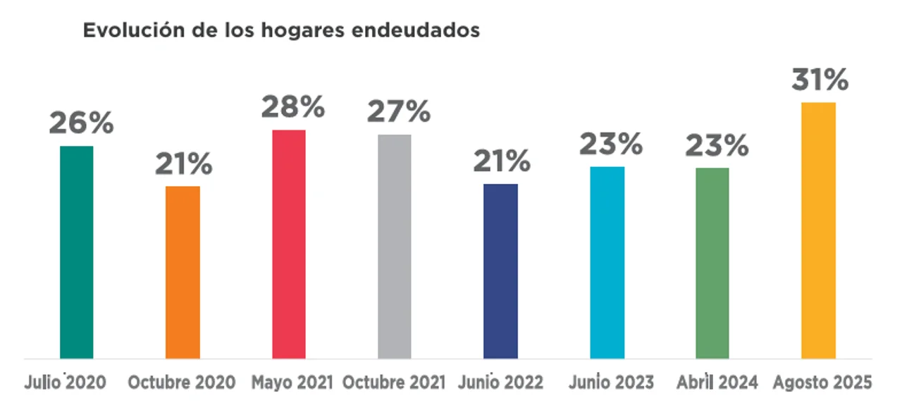 Si se consideran, además, aquellos hogares que tuvieron que pedir dinero prestado a aplicaciones, billeteras virtuales, comercios o familiares, el endeudamiento asciende al 45%.