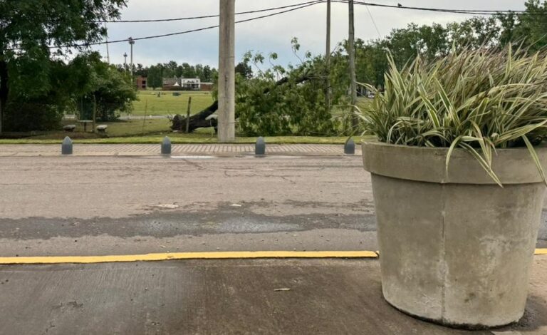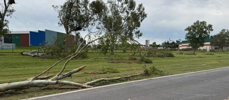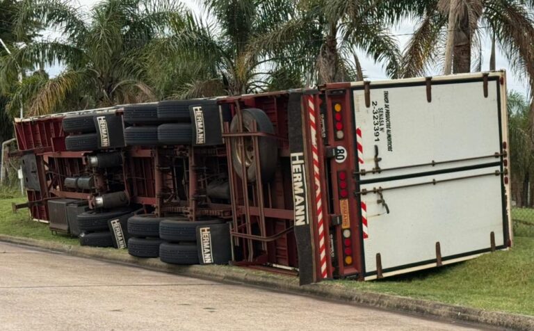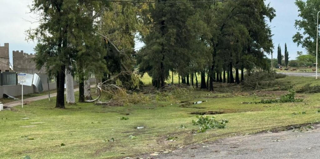 Las calles internas también son un triste escenario. En altura y a nivel del suelo, también hubo afectaciones. Una de las principales, refiere a un acoplado que se encontraba estacionado y fue tumbado por acción del viento.